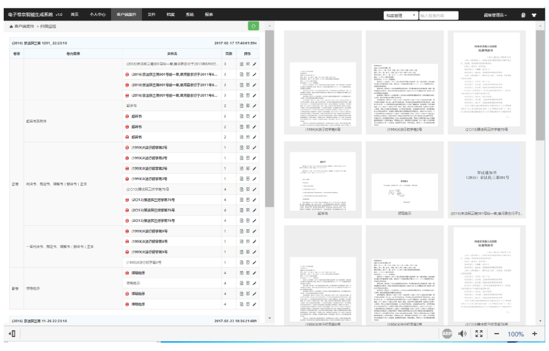 電(diàn)子卷宗智能生(shēng)成系統登錄後主界面