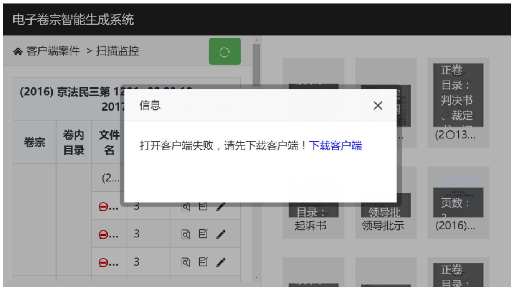 電(diàn)子卷宗智能生(shēng)成系統會(huì)自動啓動客戶端程序